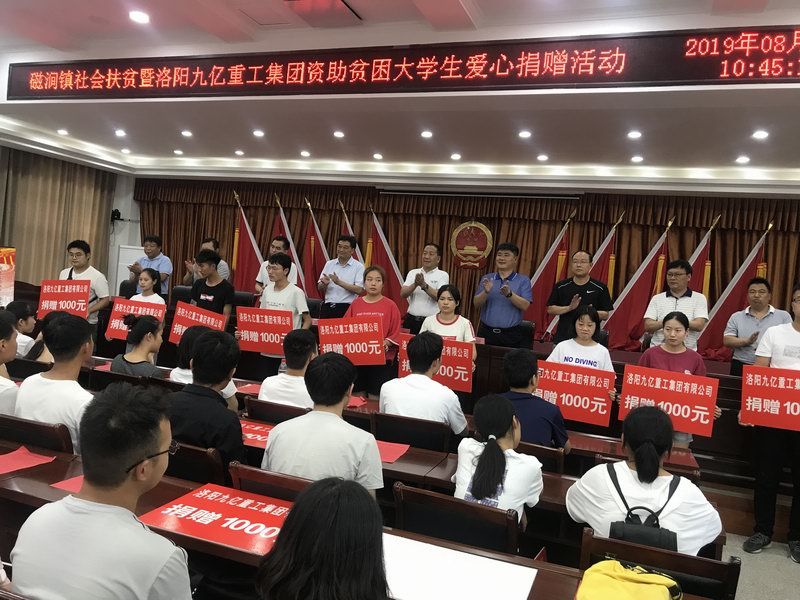 愛是與生俱來的,在血液里流動(dòng),在骨子里結(jié)晶,它源源不斷的由心而生,永不枯竭,只要人人都愿意奉獻(xiàn)一點(diǎn)愛,就如甘霖沐浴大地,人間處處盛開幸福之花! 為響應(yīng)洛陽市政府精準(zhǔn)扶貧政策,洛陽九億重工集團(tuán)有限公司及董事長王九茂積極參與捐資助學(xué)的慈善義舉活動(dòng),特做出如下決定:1、公司幫扶磁澗鎮(zhèn)2017年新招貧困大學(xué)生21名順利入學(xué),每人資助2000元,總計(jì)肆萬貳仟元整; 2、總經(jīng)理王九茂(縣政協(xié)委員)以個(gè)人名義資助磁澗鎮(zhèn)南窯村2017年新招大學(xué)生6名,總計(jì)12000元整; 我相信,在社會(huì)各界的大力支持和共同努力下,我們的“愛心助學(xué)”活動(dòng)將會(huì)惠及到更多的同學(xué),為了夢(mèng)想,刻苦讀書、報(bào)銷祖國,廣大同學(xué)也一定會(huì)在溫暖的社會(huì)大家庭里茁壯成長,必將成為國家建設(shè)的有用之才! 洛陽九億重工集團(tuán)有限公司 董事長:王九茂